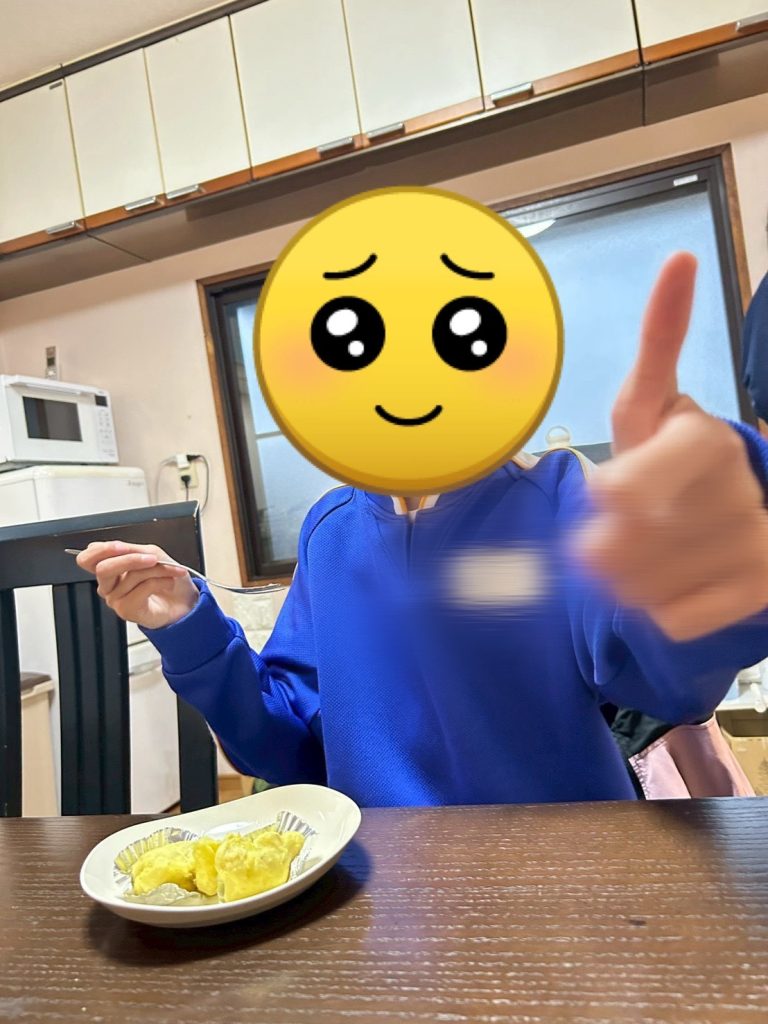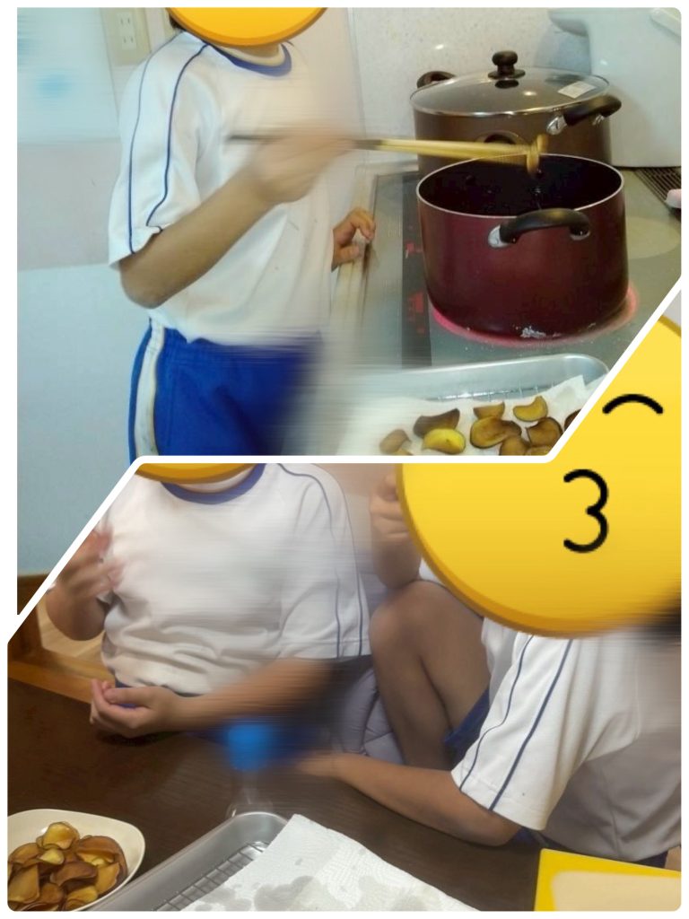 放課後デイ 2025.12.01 さつまいもでおやつを作ったよ🍠✨ 11月は、10月に収穫したさつまいもでスイートポテトとさつまいもチップスを作りました✌️ まず、レンジで柔らかくしたさつまいもにバターと牛乳を入れて手で捏ねます🖐️ その後、アルミカップに乗せてオーブンで3分🌟 完成‼︎ 上手に出来たね💗🤩 さつまいもチップスも作ったよ〜! 油に気をつけながら、上手に揚げることが出来ていました🤗👍🏻 お好みで塩かけても美味しいね😋 さつまいもを収穫してから、ずっと楽しみにしていたさつまいものおやつ作り🥰🥰