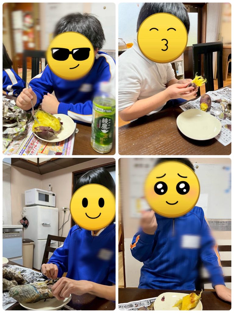 放課後デイ 2025.12.22 焼き芋🍠✨ 12月は、余っていたさつまいもで焼き芋をしました‼︎✨ 新聞紙にさつまいもを包んでから、水で濡らし、上からアルミホイルを巻いてバーベキューコンロで蒸し焼きにしました🤗 熱々ホカホカで、子供達も「美味しい!」と喜んでいました😋🌟 もうすぐ冬休みが始まります! 体調に気をつけて、元気いっぱいに楽しもうね!🥰🎶
