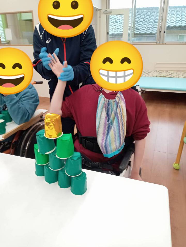 生活介護事業 2026.01.09 クリスマス会 12月に生活介護事業でクリスマス会を開催しました(^^♪ クリスマスツリーをイメージした紙コップつみ競争に参加されました。 プレゼントを持ち帰られたり、ケーキを食べられました。 次回もご参加お待ちしております♪