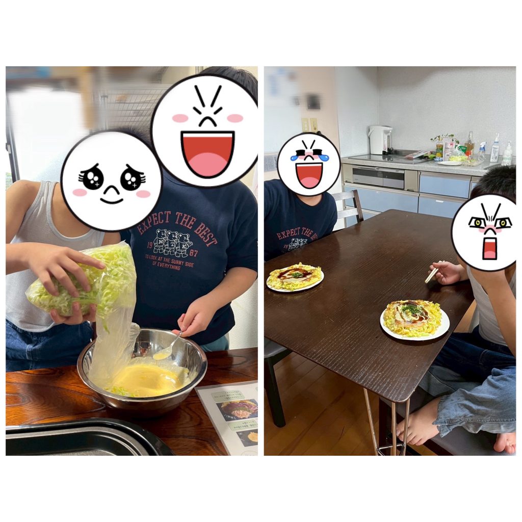 クリスマス会では、お好み焼きやクリスマスケーキ作りに挑戦し、皆で協力しながら楽しく調理をしました🎅🎄💗